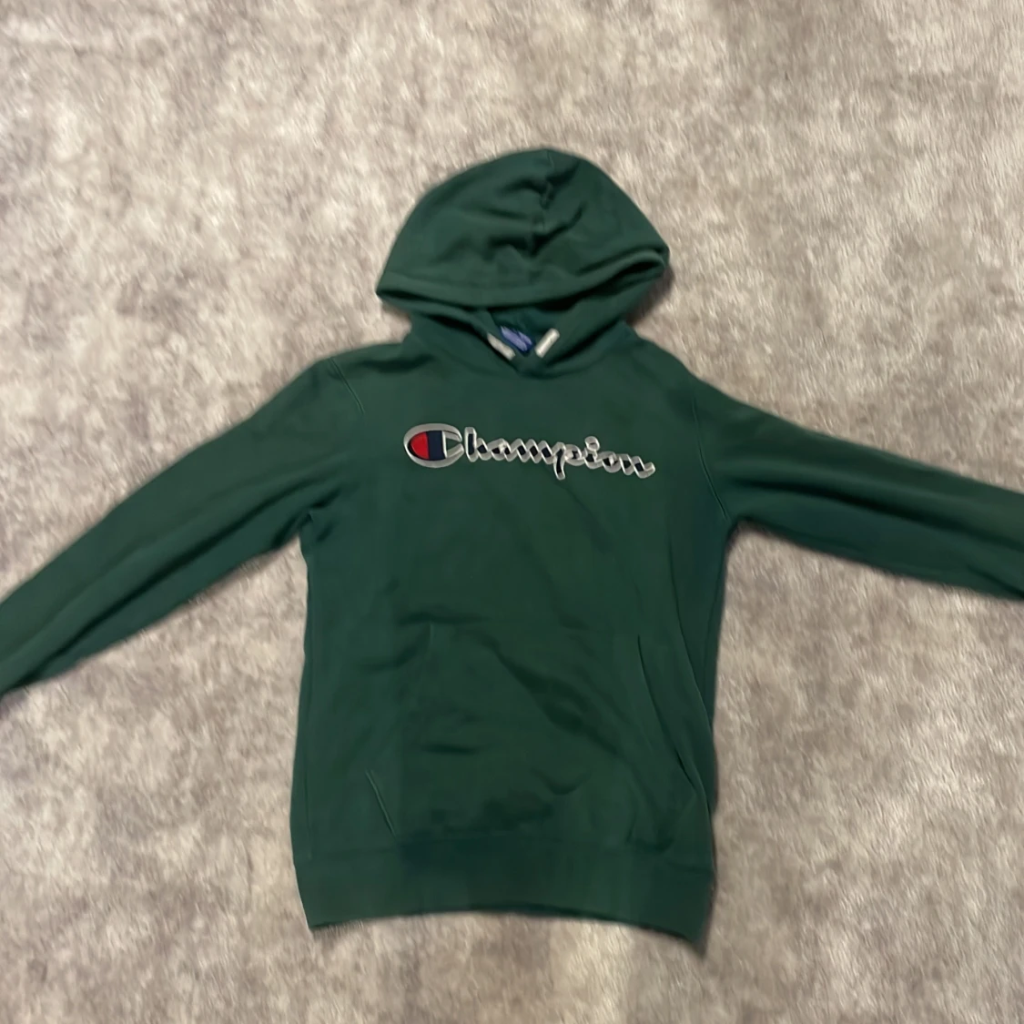 En riktigt fet Champion hoodie! Färg mörkgrön! Den passar inte längre därför säljer jag den. Storlek 155cm. Priset går att diskutera och om du har mer frågor är det bara att skriva!