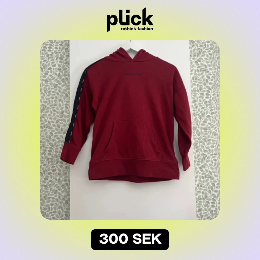 En vinröd hoodie som tyvärr inte kommer till användning längre i storlek 138/142 från champion