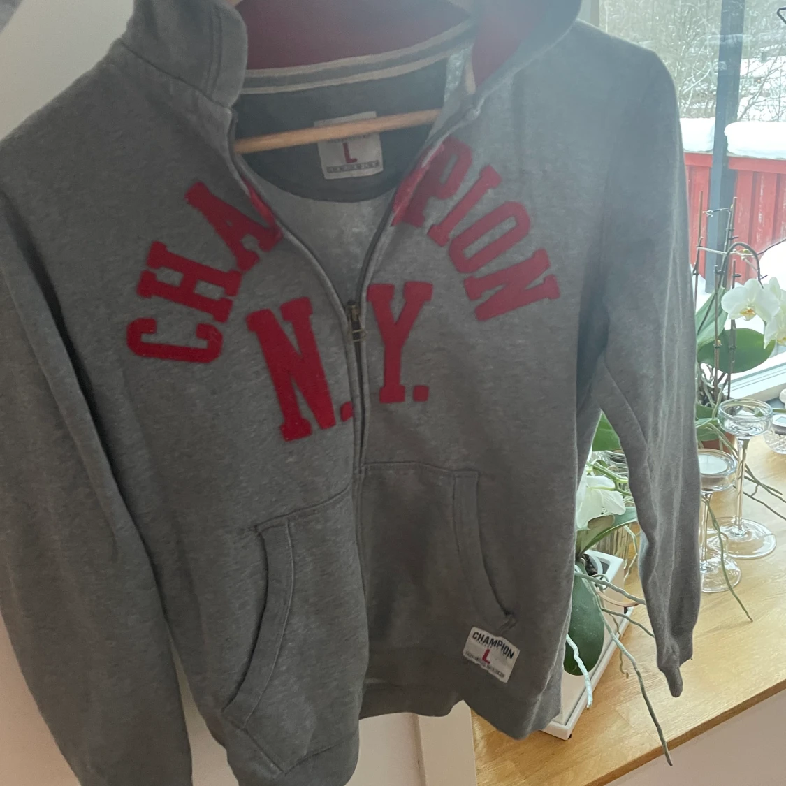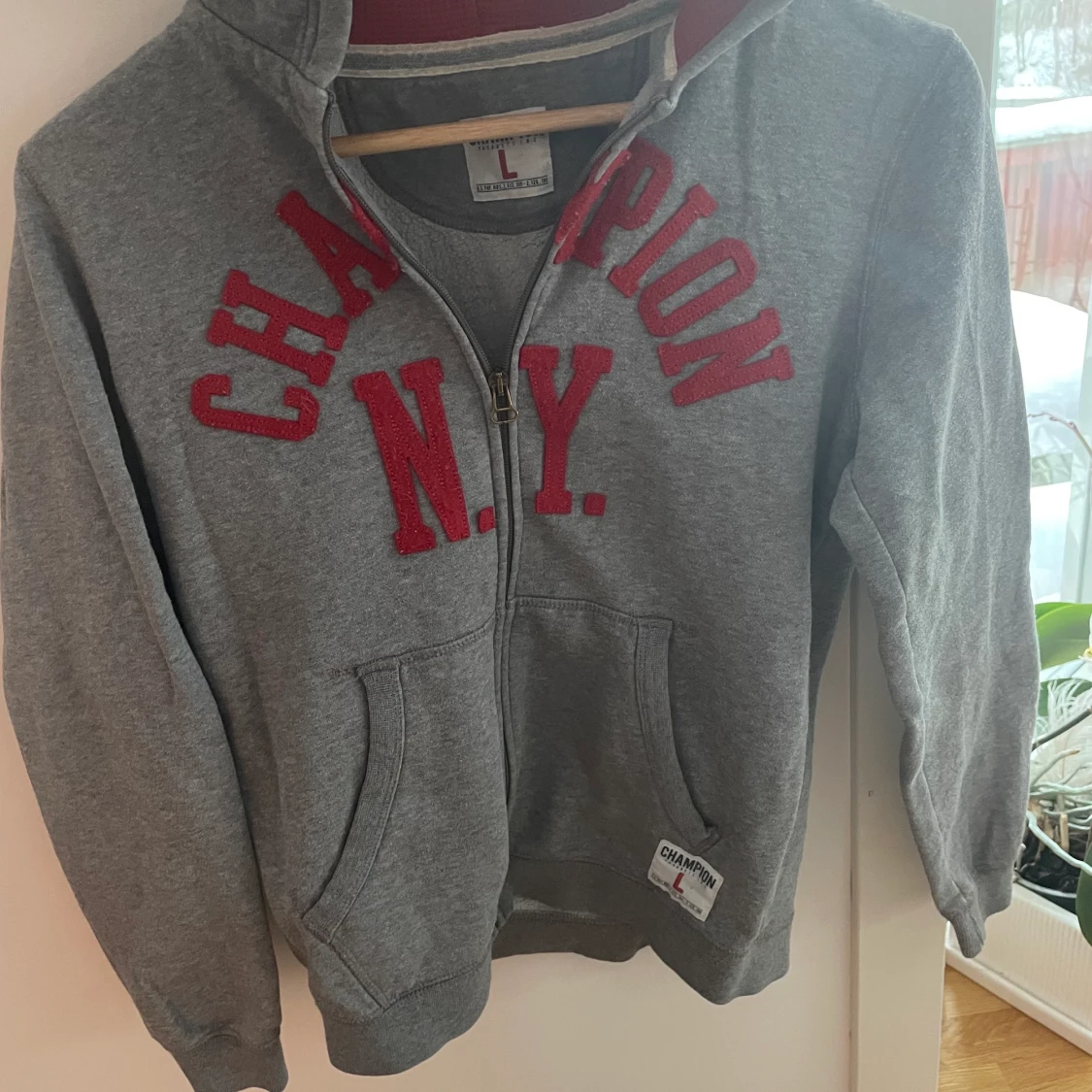 Säljer min champion NY zip-hopdie! Går inte att få tag på längre! Är strl L i barn, men som i S i vanliga strl! Säljer billigt då jag behöver pengar och rensar mina kläder🥰 Jätte fint skick!