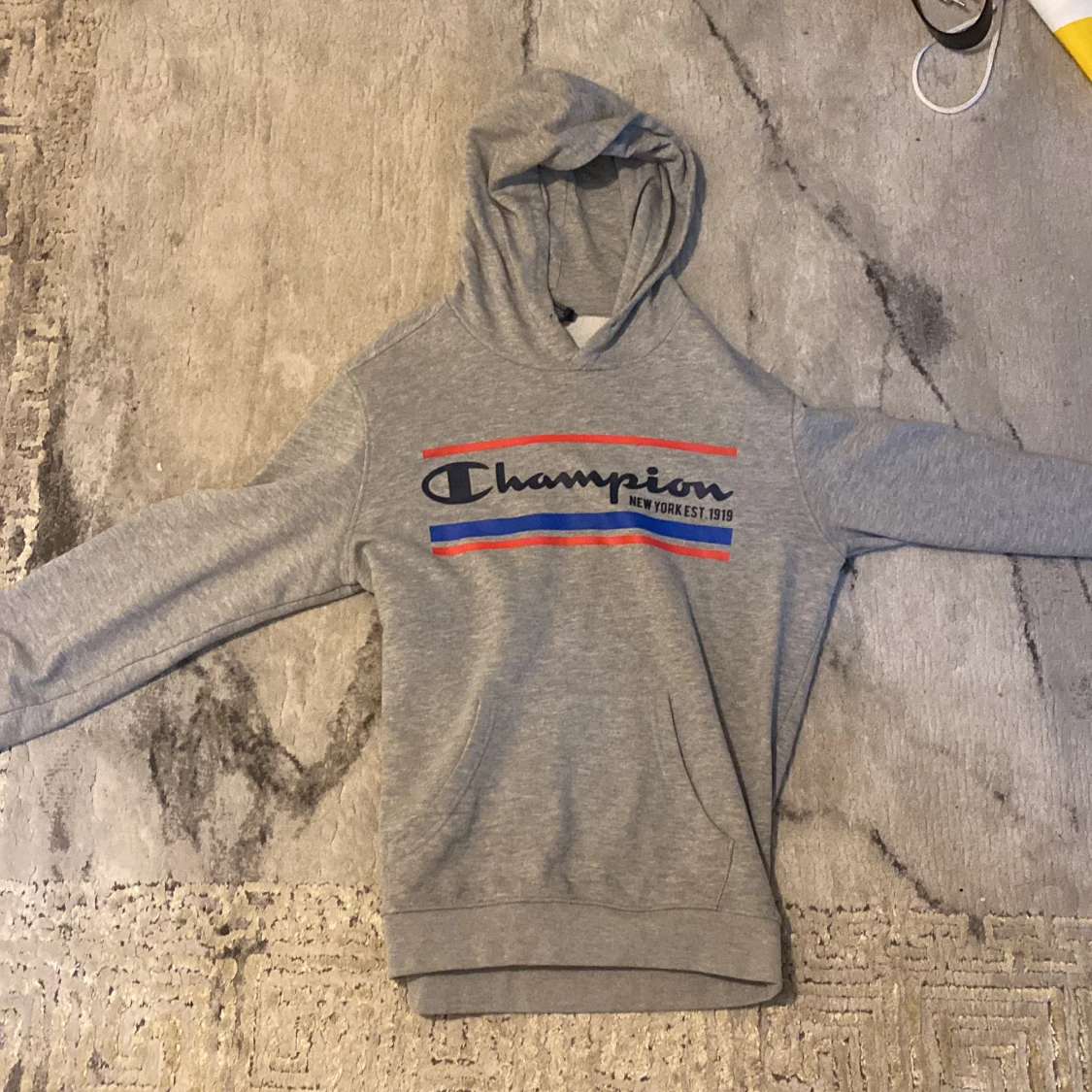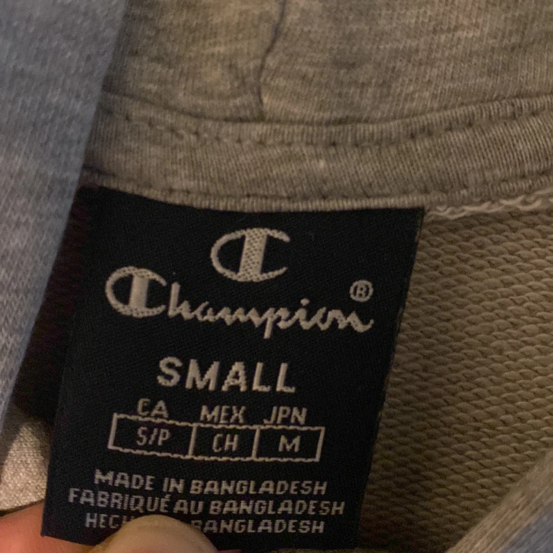 Grå champion hoodie storlek S som bara står hemma, topp skick