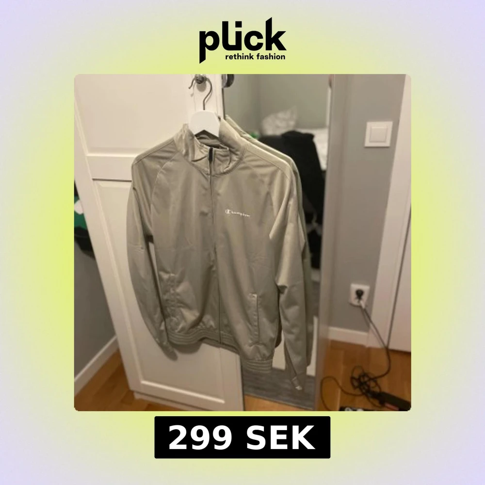 Snygg beige vindjacka från Champion i storlek small. Jackan har en stilren design med dragkedja framtill, ribbade muddar och två sidofickor. Perfekt för dig som gillar sportig och clean stil. Champion-logga broderad på bröstet.