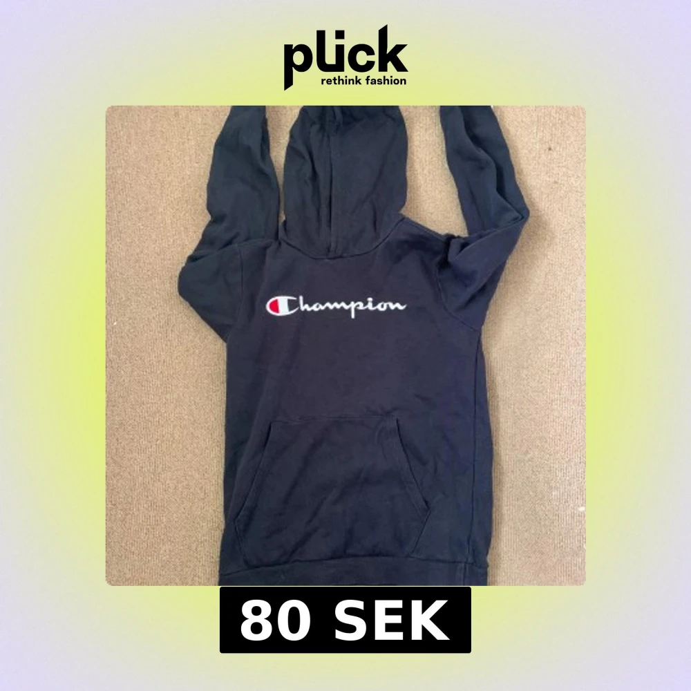 Svart hoodie från Champion i storlek XL med klassisk logga broderad på bröstet. Tröjan har huva, magficka och långa ärmar. Perfekt för en chill och sportig stil. Materialet är mjuk bomullsmix som känns skön mot huden.