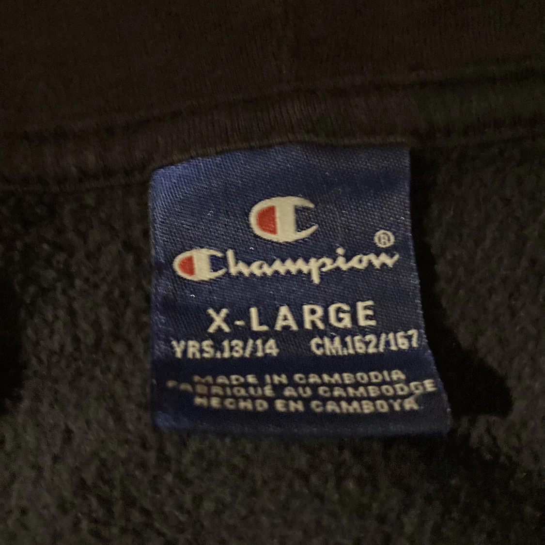 Denna riktigt snygga champions hoodie har används några gånger men är nu för liten! OBS! Det står XL i barnstorlek, skulle säga att den passar S!