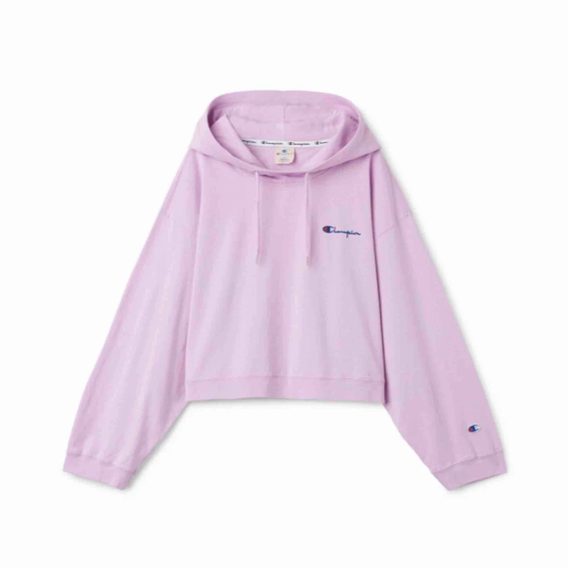 Croppad hoodie i rosa/ljuslila från Champions samarbete med Weekday 2018