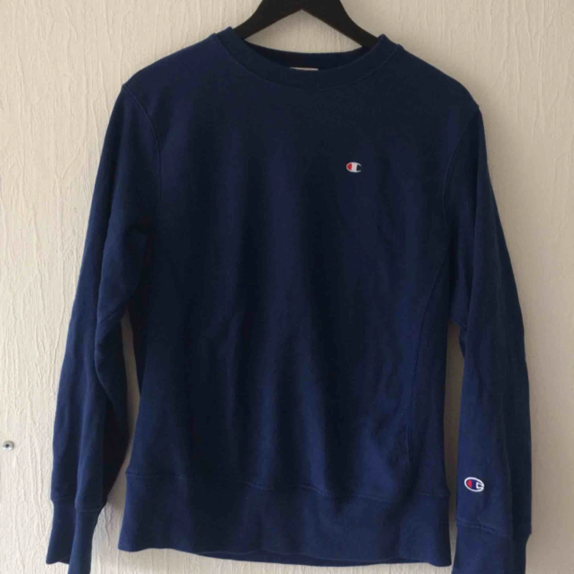 Sparsamt använd tröja från Champion. Fin blå färg och skönt innertyg. Fraktkostnad tillkommer, kan också mötas upp i Malmö.