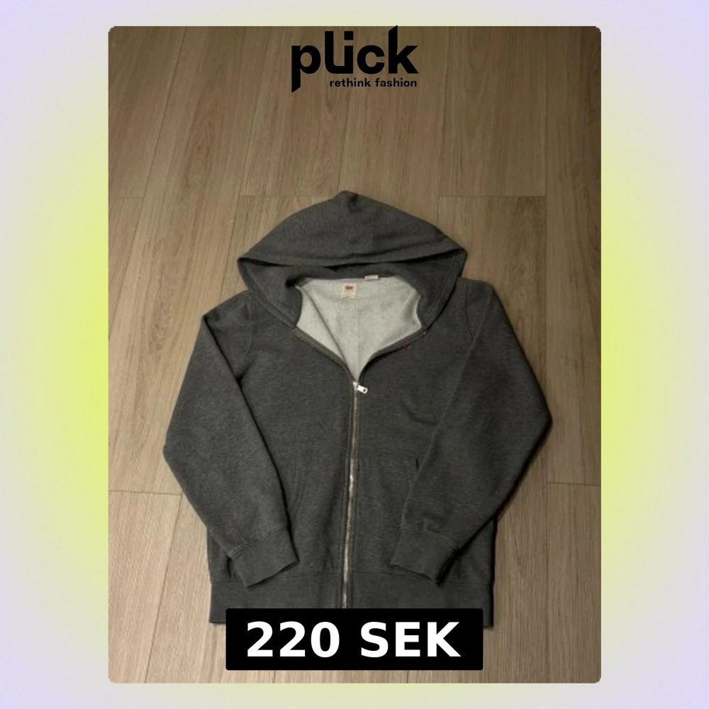 Snygg mörkgrå hoodie från Levi's i storlek M. Tröjan har huva, hel dragkedja och två fickor framtill. Mjuk insida i fleece och klassisk Levi's-logga broderad på bröstet. Perfekt för chill dagar mer bilder eller frågor är det bara att ge mig en signal svarar oftast inom 1-2 timmar och skickas samma dag om man beställer innan 19:00