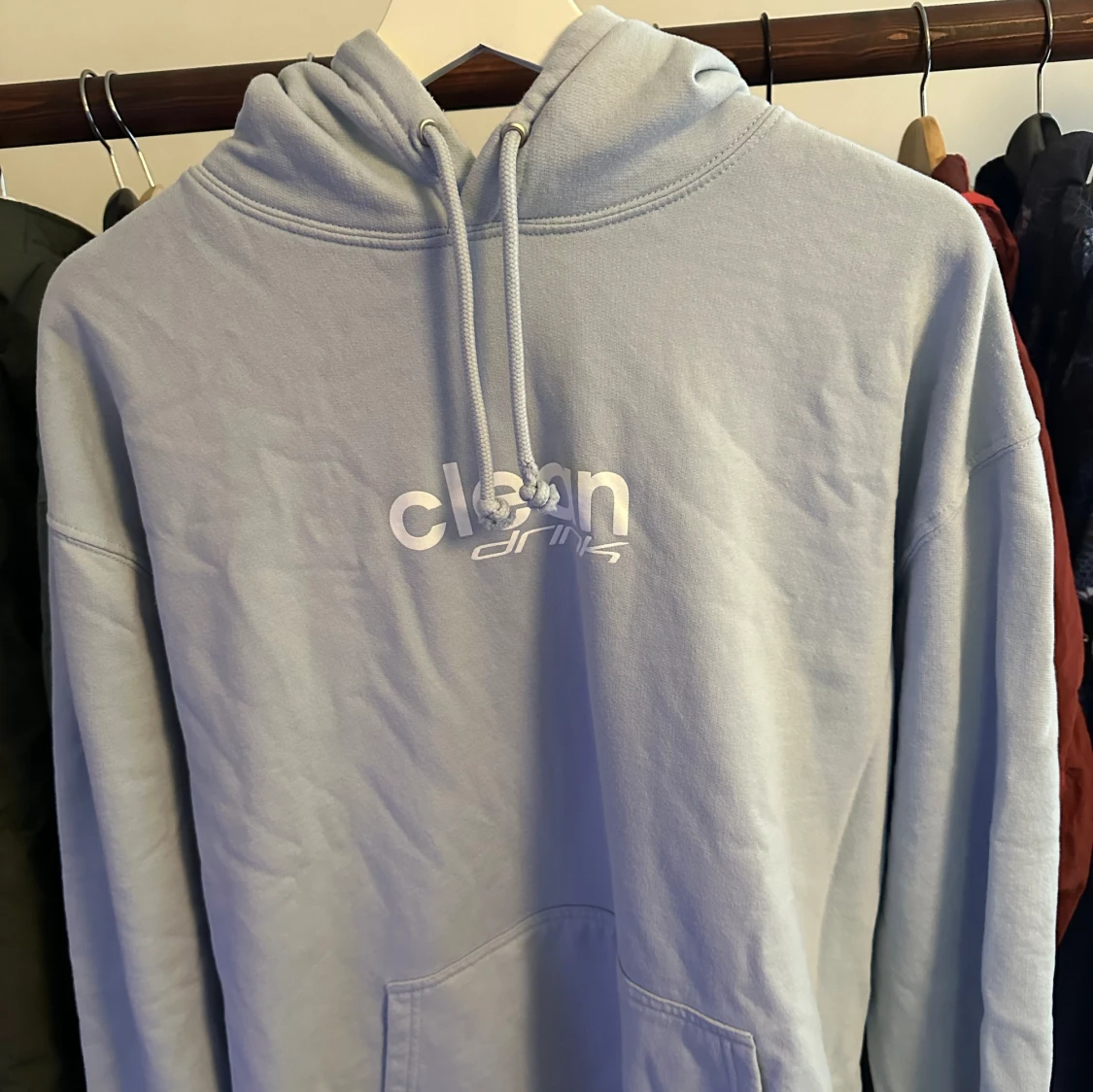 Helt ny clean drinks hoodie i storlek L sitter som en M