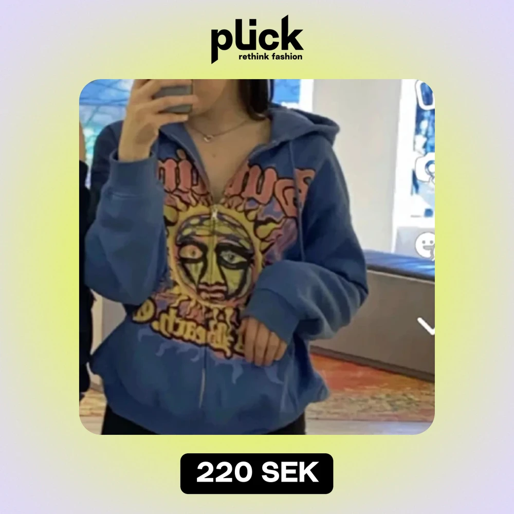 En cool zip up hoodie med sol tryck på framsidan. Lite Oversized i modellen