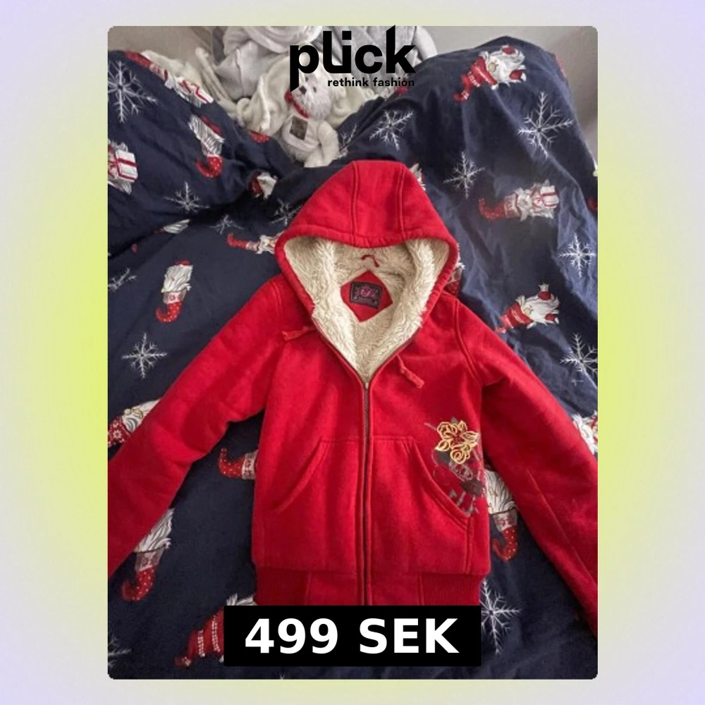 Snygg röd zip up från Trandy med coolt 2000s tals print på varm och bra för vintern och hösten det står storlek M men passar även S passar på både tjejer och killar!!