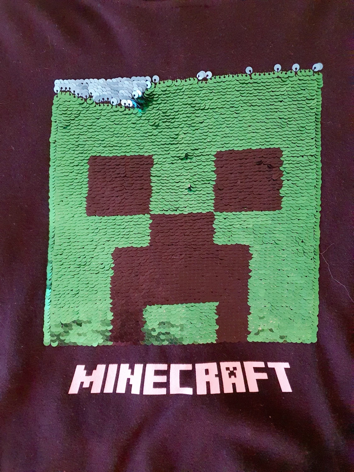 Minecraft hoodie stl 146/152. Vändbara paljetter, Creepern blir grön eller blå. Mycket bra skick, mjuk och skön.