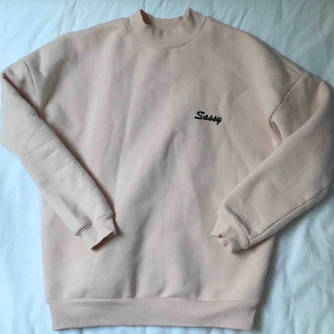 Ljusrosa tjocktröja från Topshop. Använd 1 gång, jättebra skick. Betalning via swish, kan mötas upp i Stockholm alternativt frakta då köparen står för frakten.
