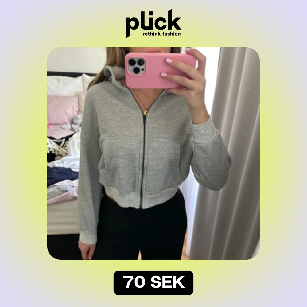 Grå croppad hoodie. Storlek XS. 70 kr.