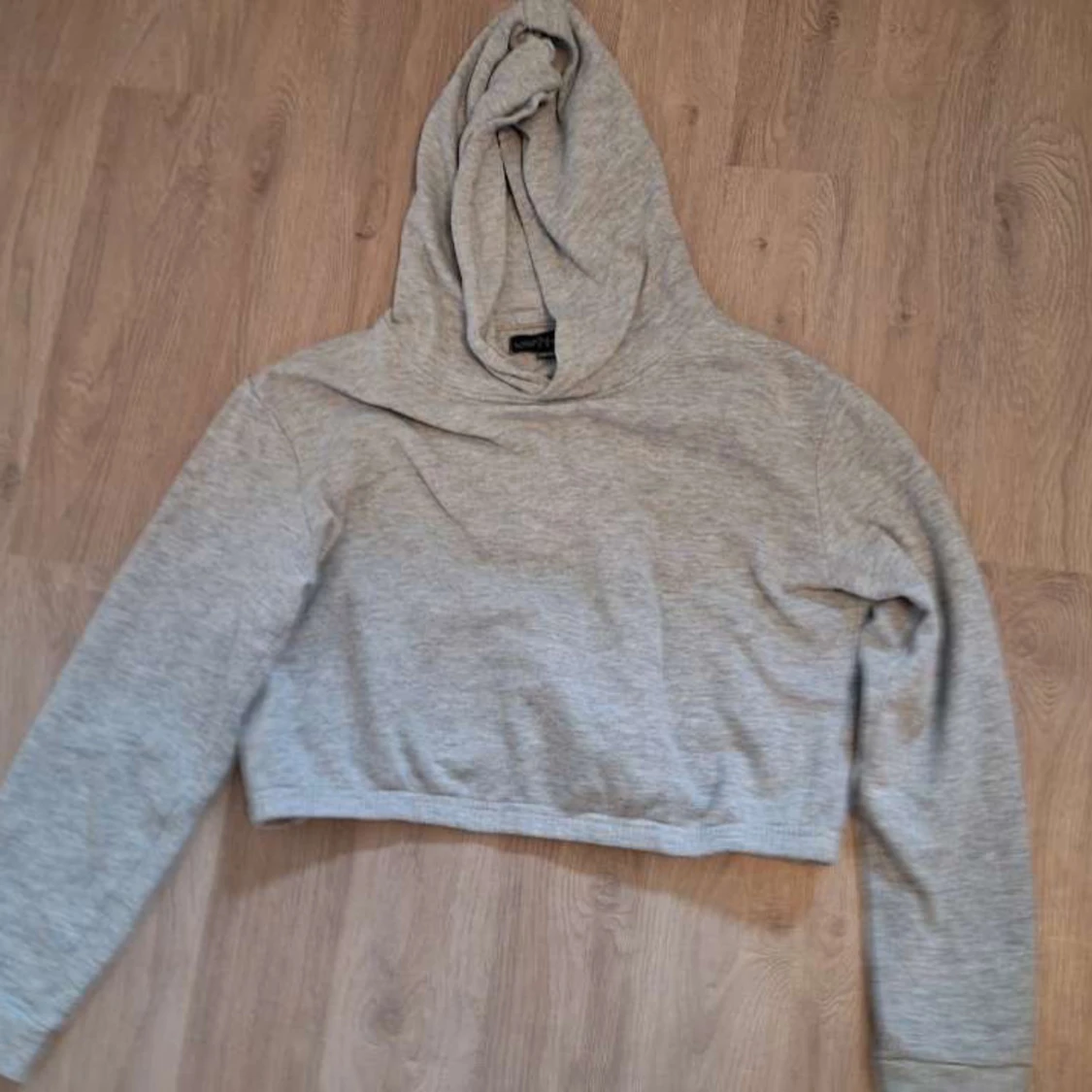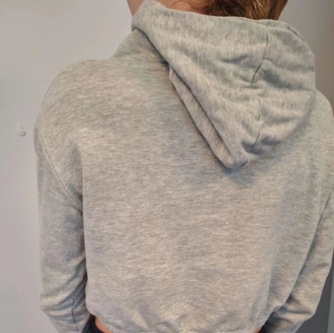 Grå Croppad hoodie från okänt märke. Snygg att ha som den är eller att ha ett linne under. Är inte säker vilken storlek den är men passar xs/s. Pris går att diskuteras och det är rabatt på bundles!