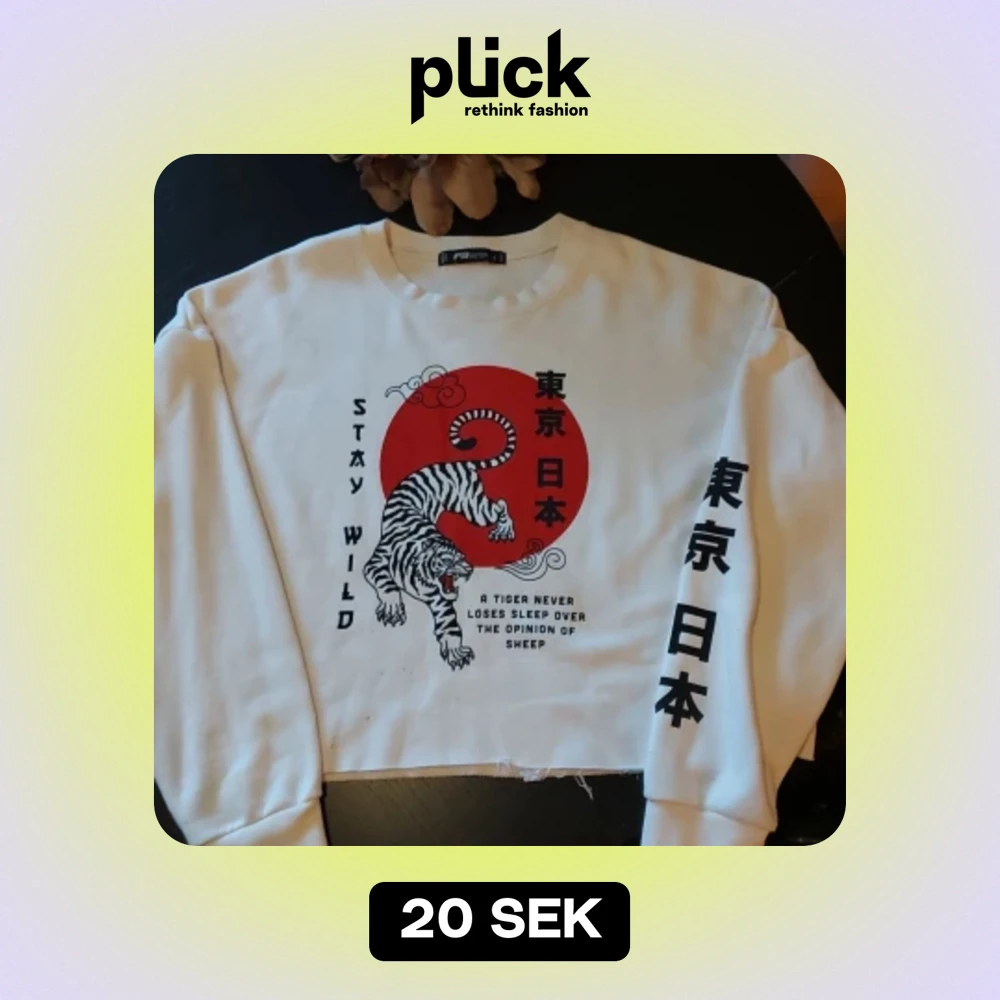 Asiatisk inspirerad croppad sweater Gjord så att den ska se "klippt" ut. Har små små fläckar som knappt syns (Se bild) TRYCK EJ KÖP NU
