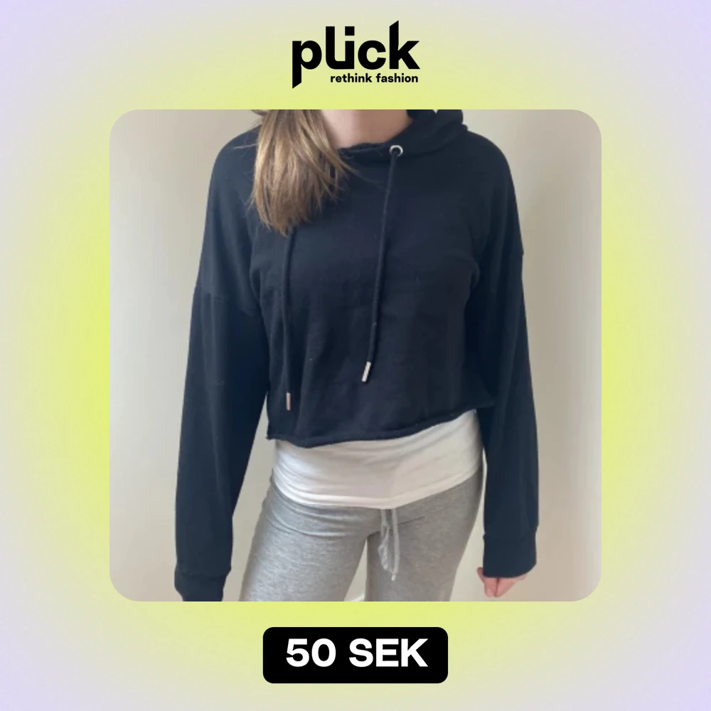 En svart crop top hoodie i bra kvalitet och inte så använd