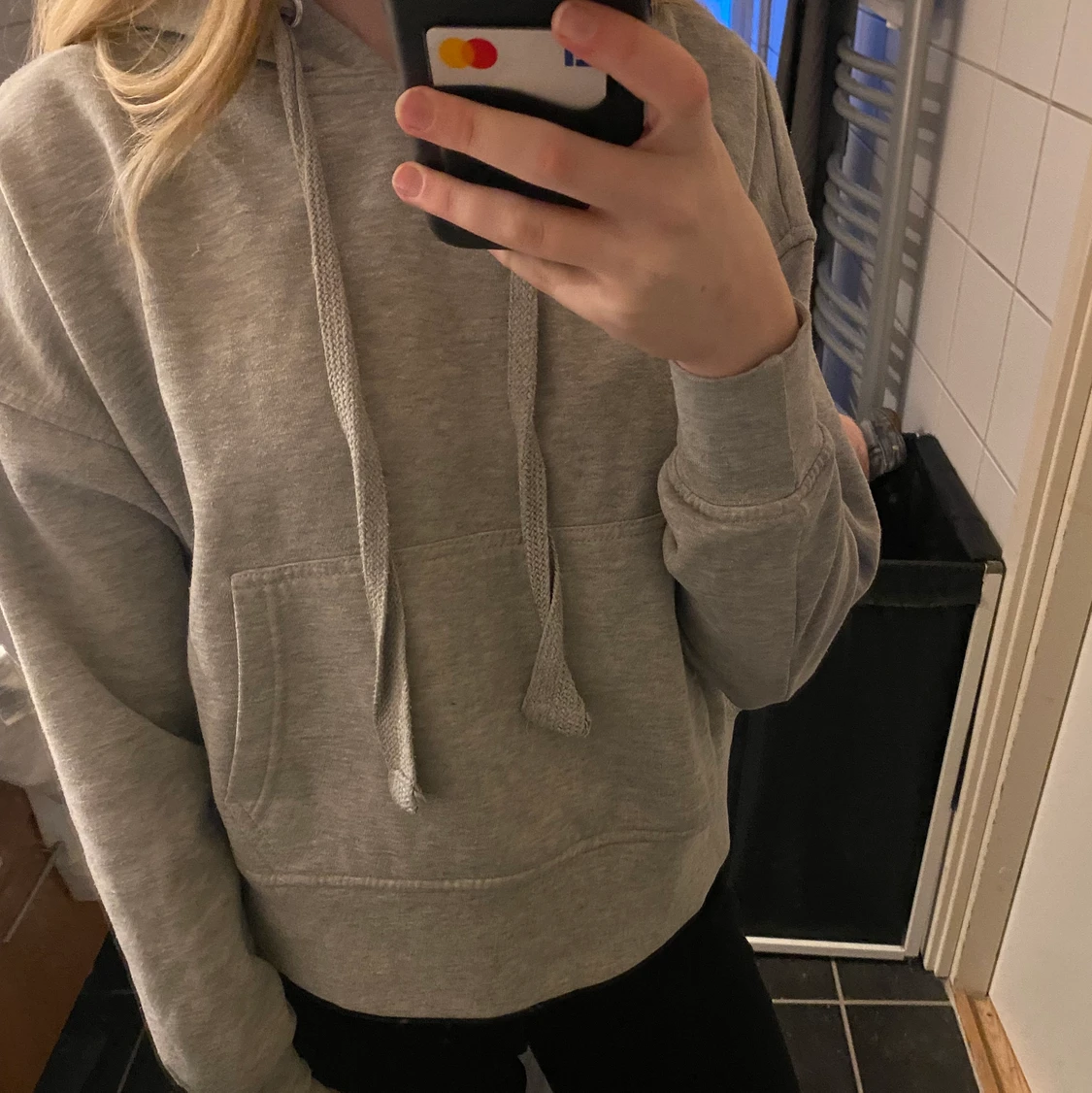 Grå hoodie med tjocka band köpt på cubus i storlek xs men passar även s