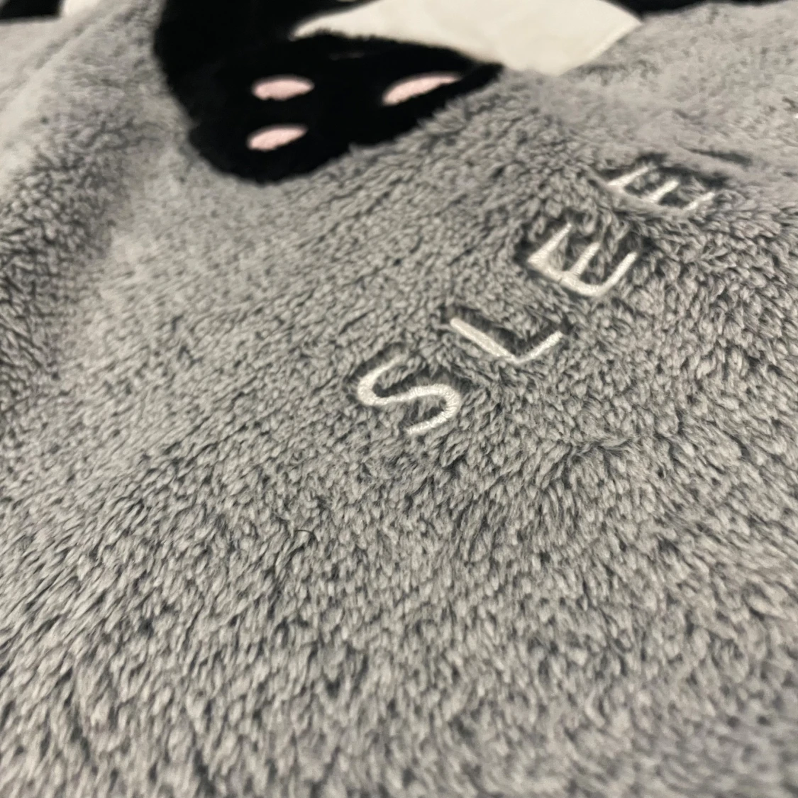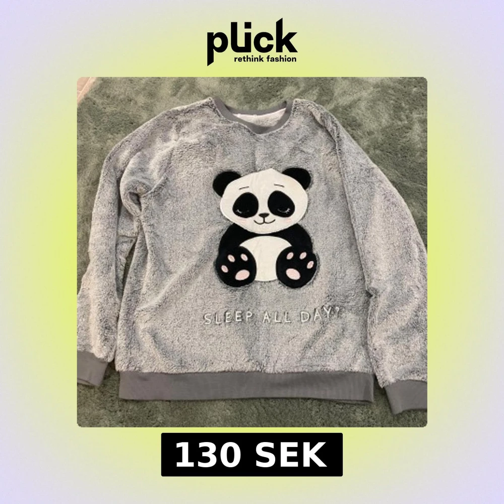 Supermjuk och fluffig grå tröja från Cubus med en söt panda framtill och texten 'SLEEP ALL DAY'. Tröjan har långa ärmar, ribbade muddar och är perfekt för mysiga dagar hemma. Materialet är fleece och motivet är broderat för extra detalj.