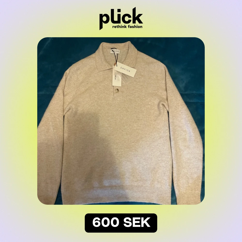 Säljer en supermjuk och lyxig beige kashmirtröja från Davida. Tröjan har en klassisk pikékrage och knappar framtill. Perfekt för både vardag och lite finare tillfällen. Den är i nytt skick med etikett kvar. Passar perfekt till höst och vinter, storlek L men passar M, köpt för 2600