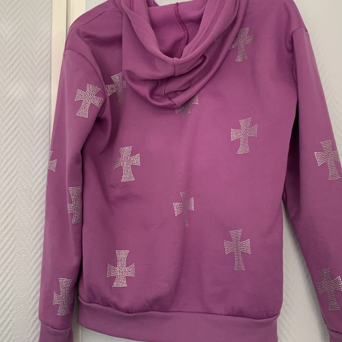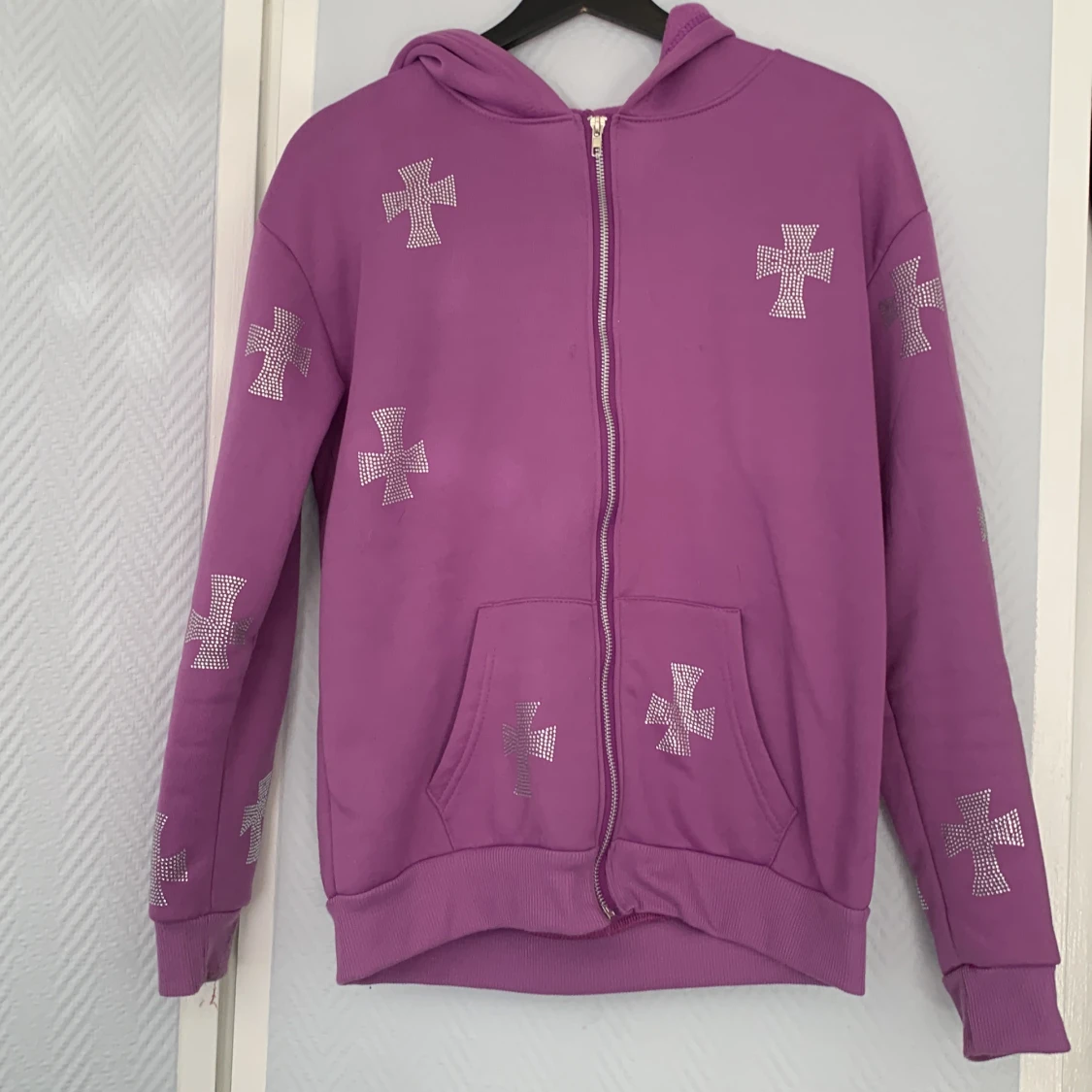 Fet lila hoodie med massa diamant kors överallt väldigt mjuk knappt använd