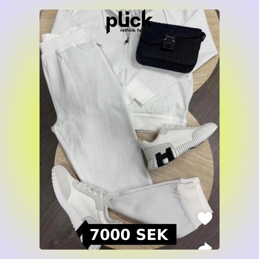 Snygg vit hoodie från Dior med dragkedja framtill och diskret logga på bröstet. Hoodien har en huva med dragsko och ribbade muddar vid ärmslut och nederkant. Perfekt för en clean och exklusiv streetwear-look.