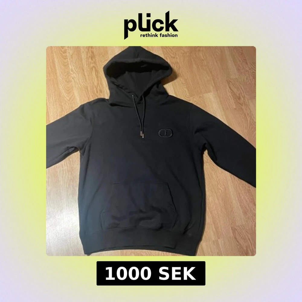 En simpel svart Christian dior hoodie med texten CD på