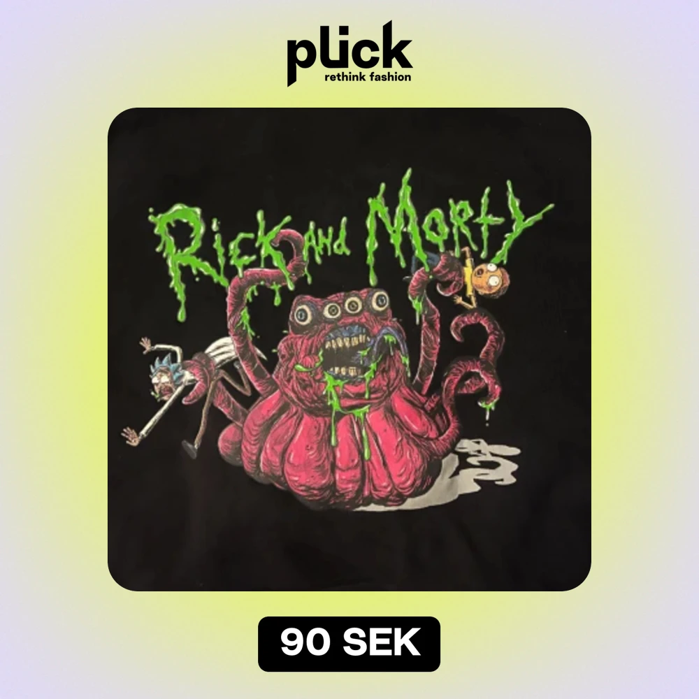 Svart hoodie med tryck på bröstet och båda ärmarna. Rick and Morty. Aldrig använd.