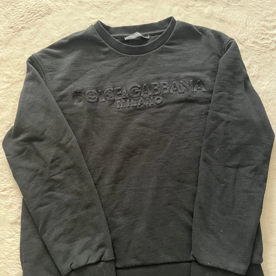 Svart sweatshirt från Dolce & Gabbana med broderad logga på bröstet. Tröjan har rund hals, ribbade muddar och är tillverkad i mjuk bomull. Perfekt för dig som gillar stilrena och exklusiva plagg med en clean look.