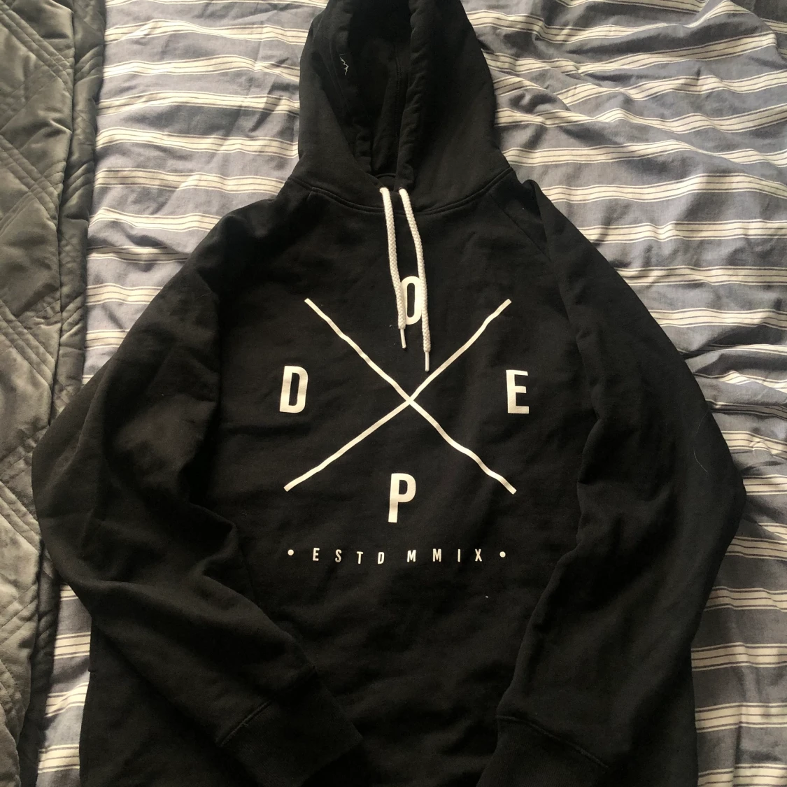 Dope hoodie i färgen svart, använd max 4 gånger då tröjan är för stor för mig. Sitter bra i längden på mig som är 163cm. Storlek large men sitter som en medium. Kan även användas till skidåkning när de är varmt i backarna. Vid snabb försäljning kan priset diskuteras