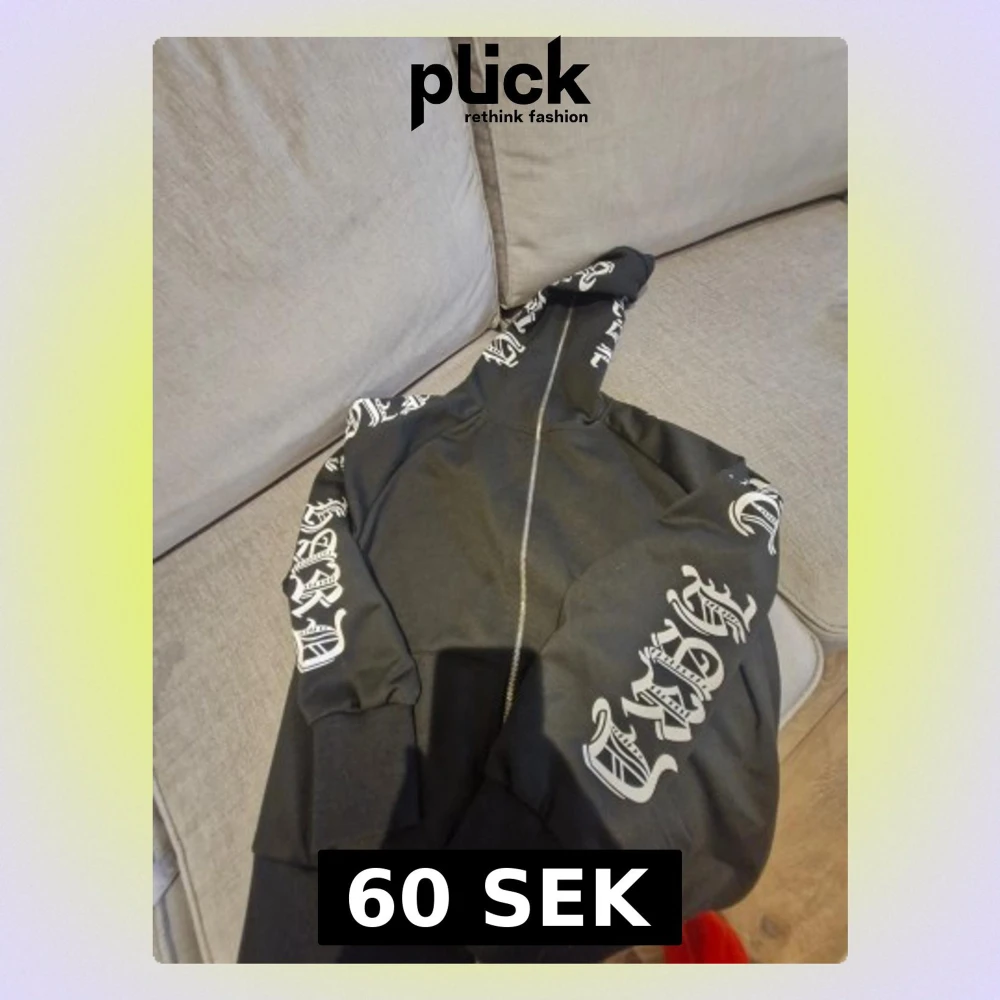 Hoodie med tryck på armarna och huvan, dragkedja hela vägen upp till ansiktet, oanvänd. Storlek Xs/S