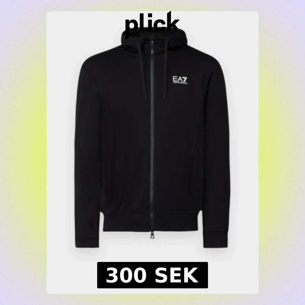 Snygg svart hoodie med dragkedja från EA7 Emporio Armani. Hoodien har huva med dragsko, ribbade muddar och en liten vit logga på bröstet. Tillverkad i mjukt material som känns skönt mot huden. Perfekt för en avslappnad och trendig look. Betalning genom vanlig swish!