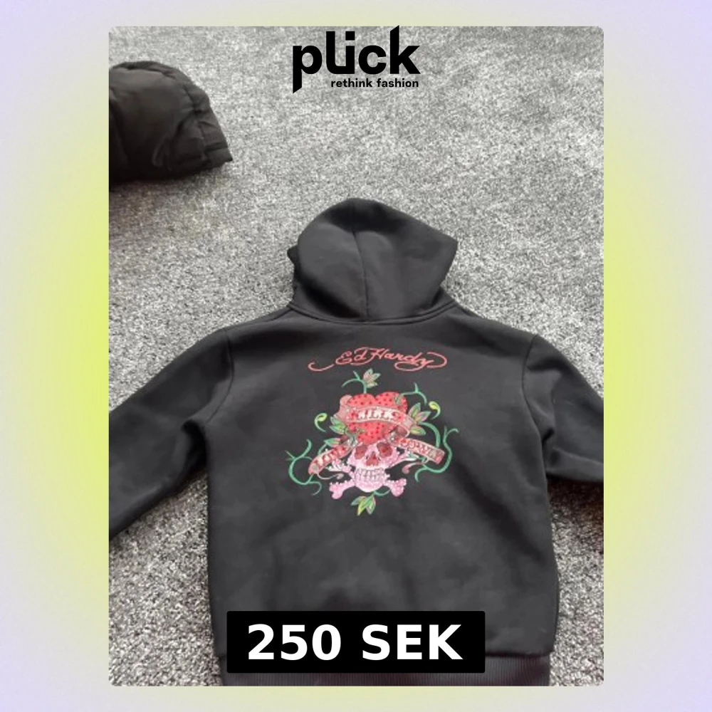 Svart hoodie från Ed Hardy, den är använd några få gånger, och den passar som en xs. Säljs då den är för liten för mig i ärmarna.