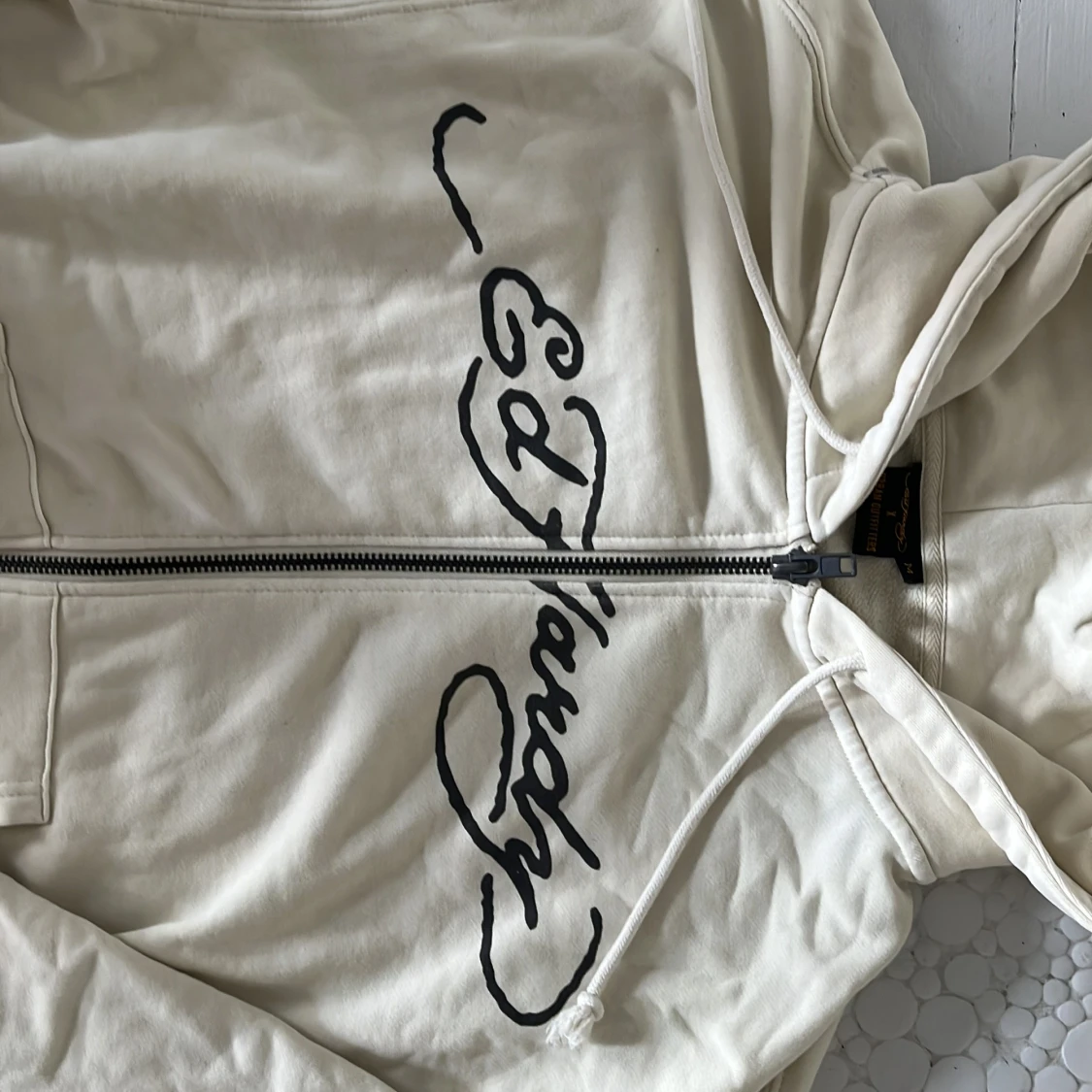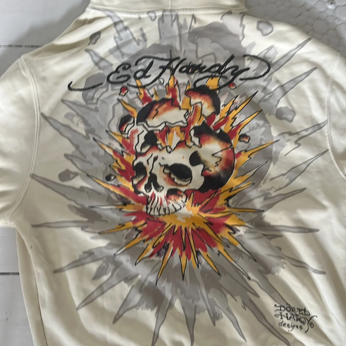 Det är en helt sprillans ny ed Hardy tröjan ångrar köpet köpte den kaneke 1 år sen och kunde ej lämna tillbaka köpte för runt 800-900kr pris kan diskuteras och man märker inte något typ an användning