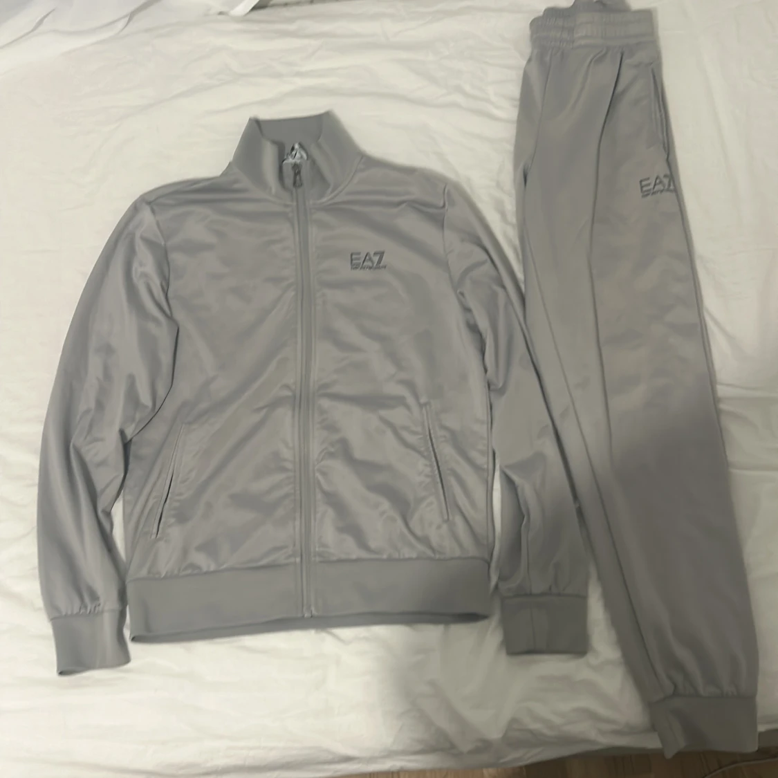 Grå full set tracksuit, båda mjukisarna och koftan är i storlek Small (S), utmärkt skick bara använt runt 5 gånger, originalpris 1948,00 kr, mitt pris kan diskuteras!