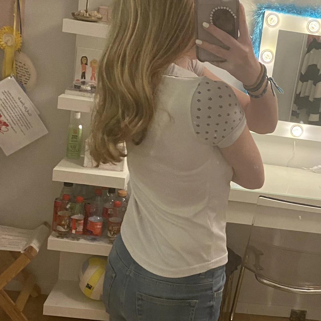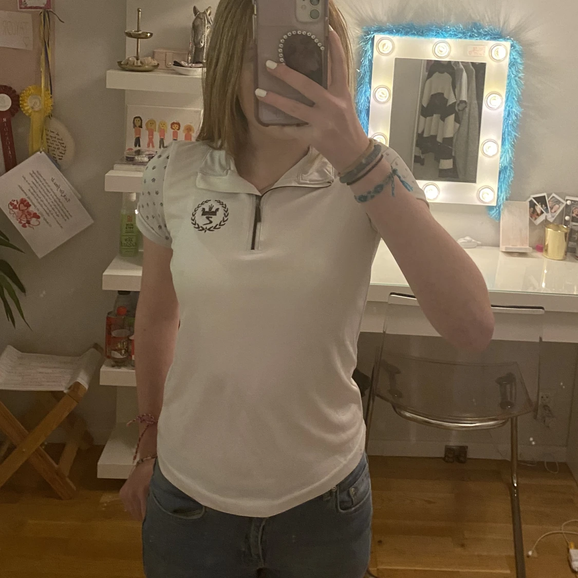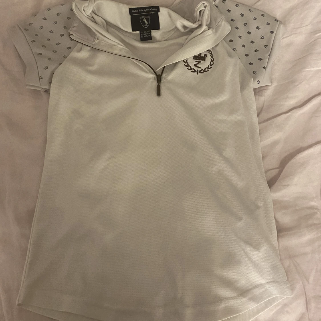 Vit rid T-shirt i fint skick. Skönt material när det är varm. Kronor på ärmarna.