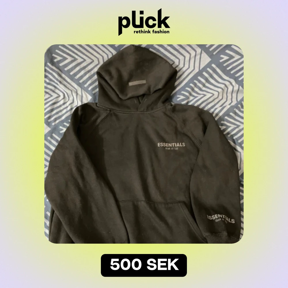 Nästan helt ny essentials hoodie. Storlek M. Men passar även L. Inga skador på hoodien. Kan gå ner i pris via snabb affär. Hör av er ifall ni har frågor om hoodien!