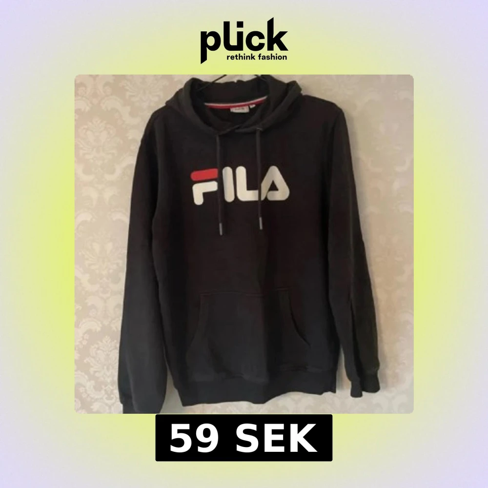 Svart hoodie från FILA i storlek XS med stor vit och röd logga framtill. Tröjan har huva med snörning och en klassisk känguruficka. Perfekt för dig som gillar sportig och avslappnad stil.
