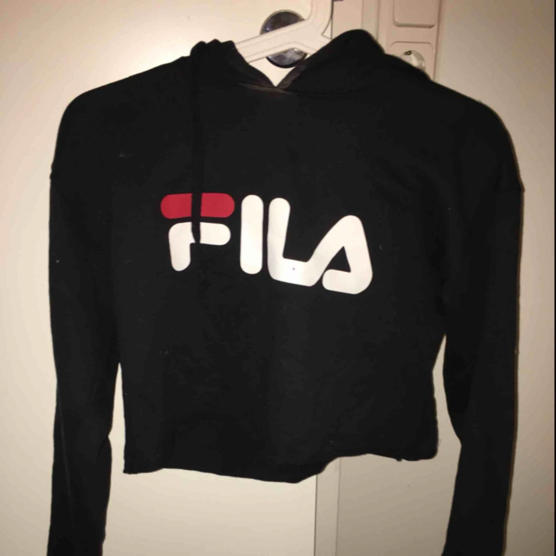 Filahoodie som är ganska croppad Finns dock en liten prick som syns om man zoomar in på L:et som jag inte tror går bort i tvätten