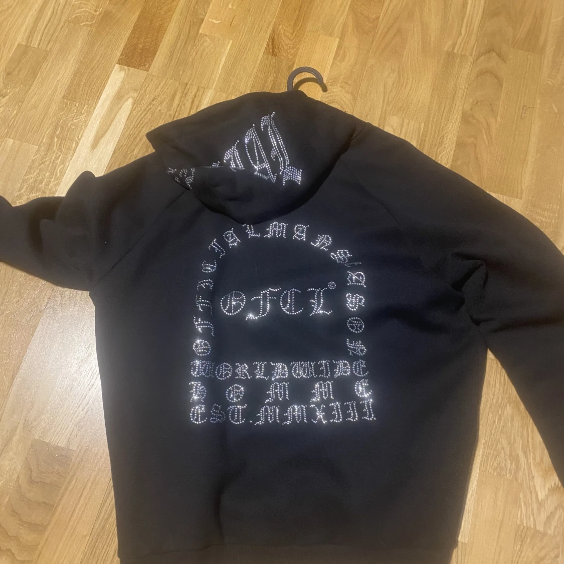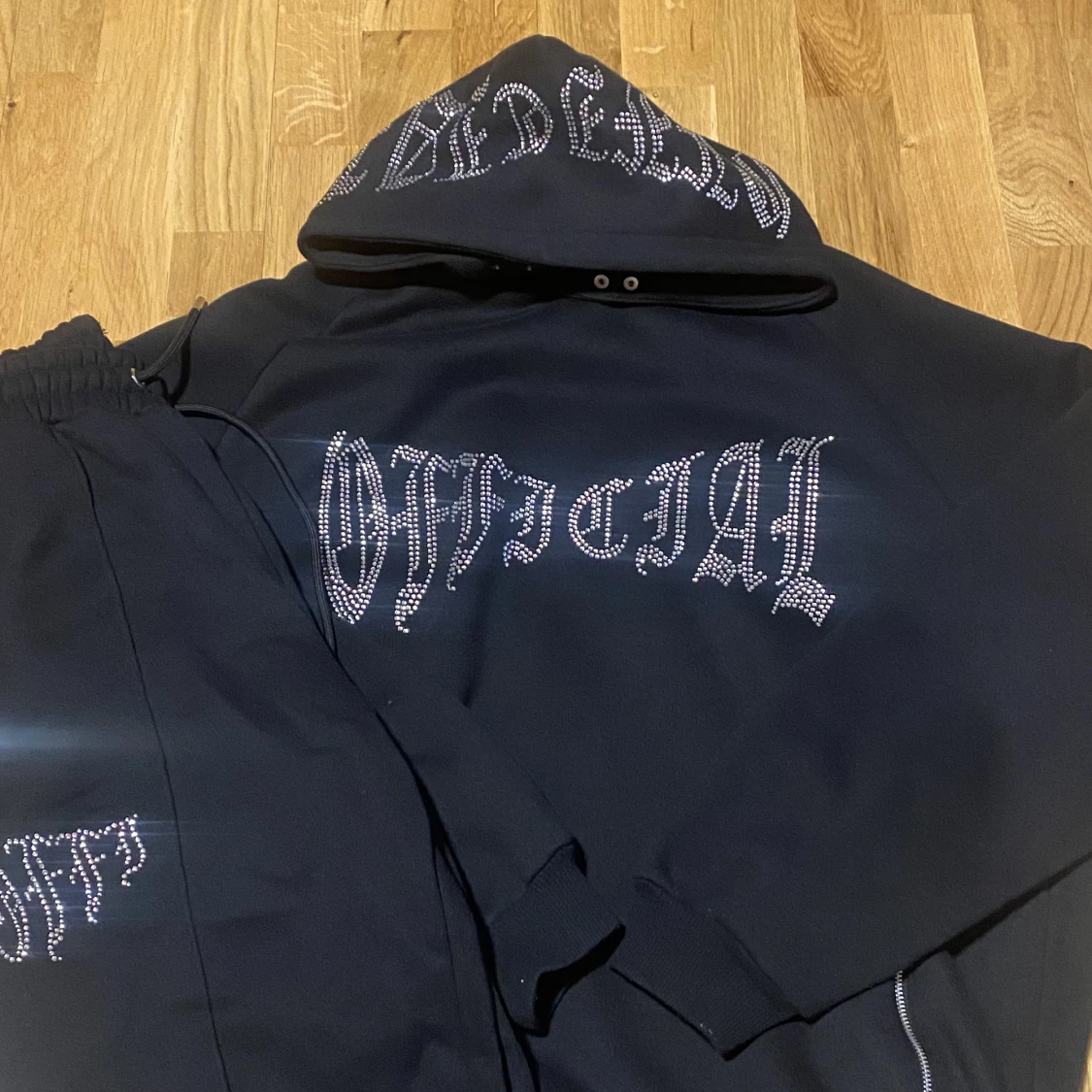 Hej säljer en mycket fina hoodie och byxor som är väldigt sparsamt använda, dom är oversized båda så väldigt mysiga och sköna det är en bomull mix med polyester. Hör av dig om du har någon fråga eller annat. Även tryck på ryggen