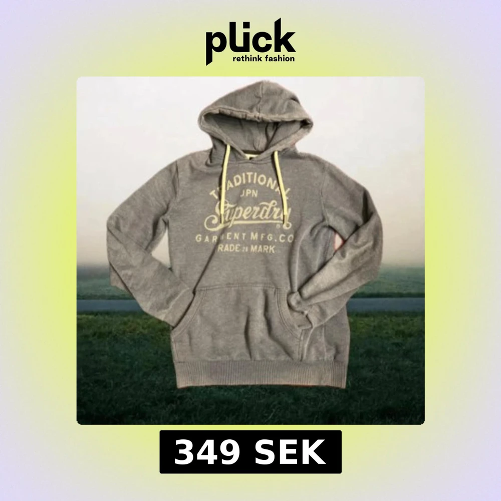 Säljer en grå hoodie från Superdry med stort vintage-inspirerat tryck på bröstet. Tröjan har huva med vita snören och en klassisk känguruficka framtill. Mjuk insida och ribbade muddar vid ärmslut och nederkant. Perfekt för chill dagar. Står inte storleken i men runt xs/s nånstans där