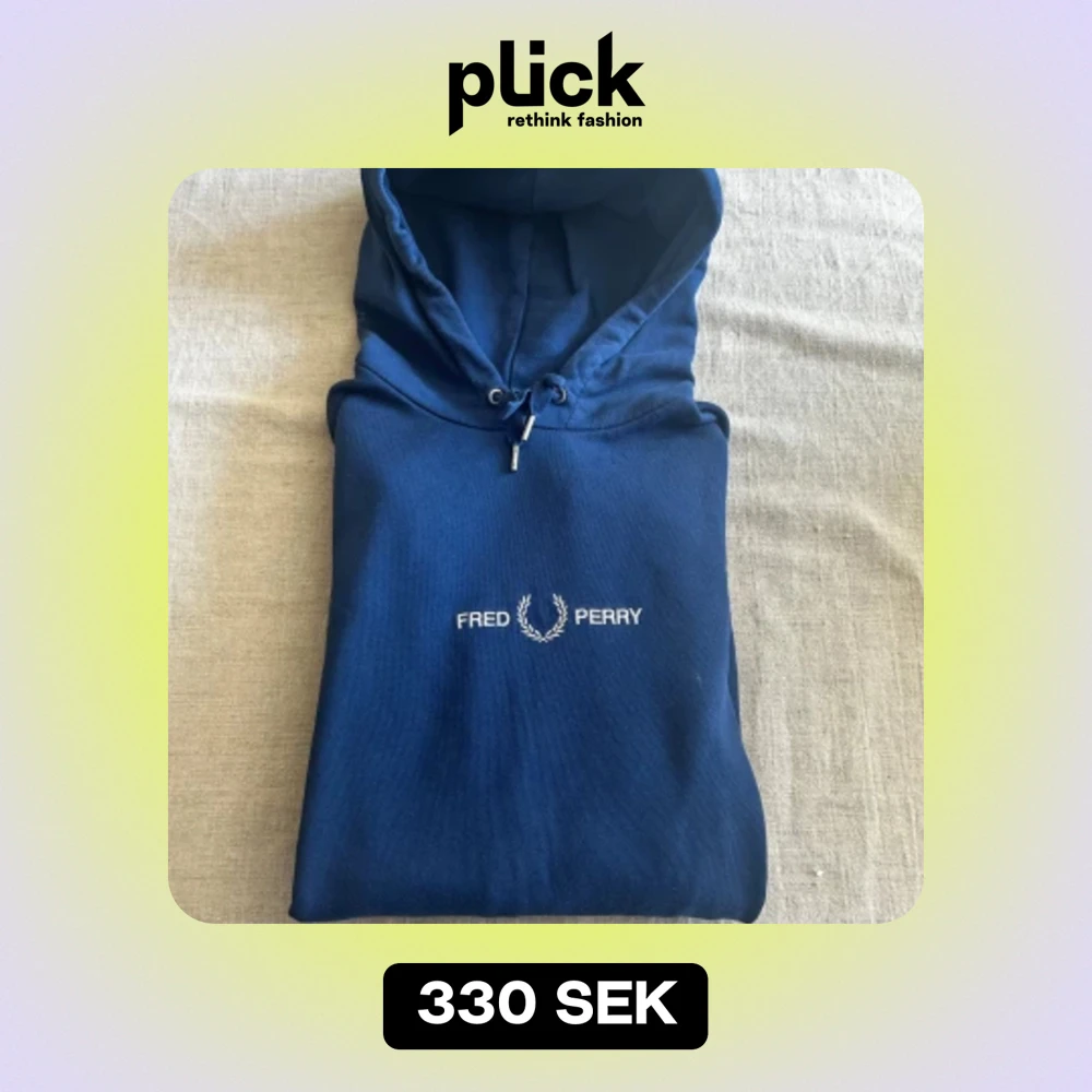 Blå hoodie från Fred Perry i fint skick. Enbart använd ett fåtal gånger. Nypris: 1099kr Strl: M