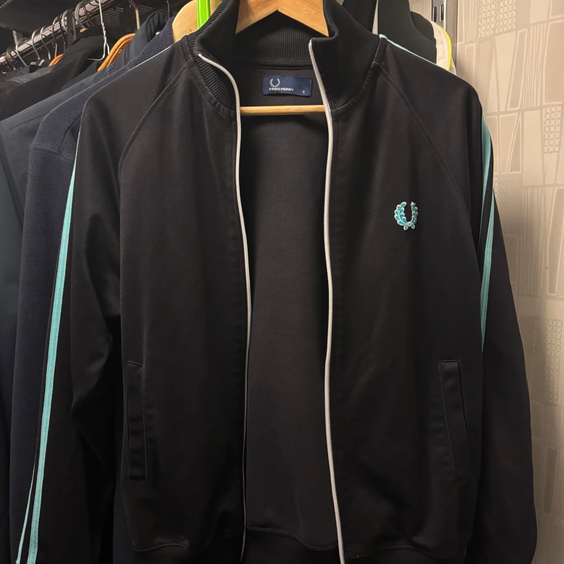 En bekväm, snygg och casual fred Perry track top i storlek S.
