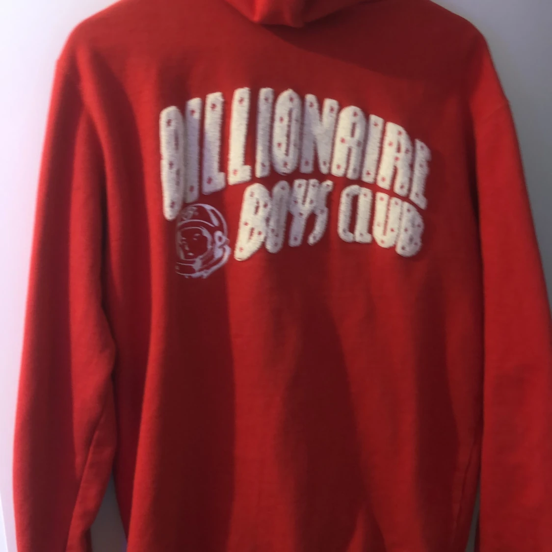 En röd full zip från billionare boys club, storlek M och sitter lite oversize, skriv för mer bilder eller annan information!