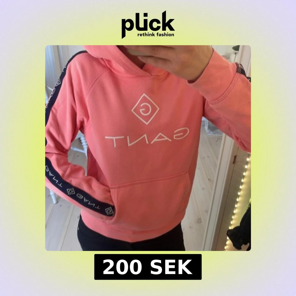 Säljer en snygg rosa hoodie från Gant med vit logga på bröstet och mörkblå detaljer längs ärmarna och luvan. N:et har lossnat lite men inget man tänker på.💓