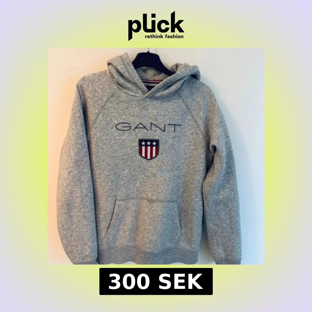 Snygg grå hoodie från GANT med broderad logga och sköld på bröstet.