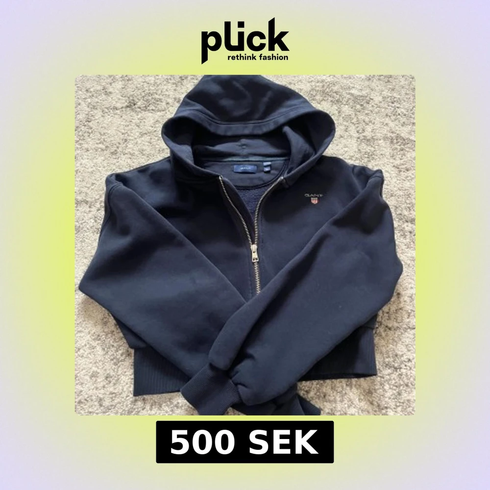 Säljer en snygg mörkblå zip hoodie från GANT med dragkedja och huva. Passar ungdomar i åldern 13-14 år. Tröjan är en kort modell.