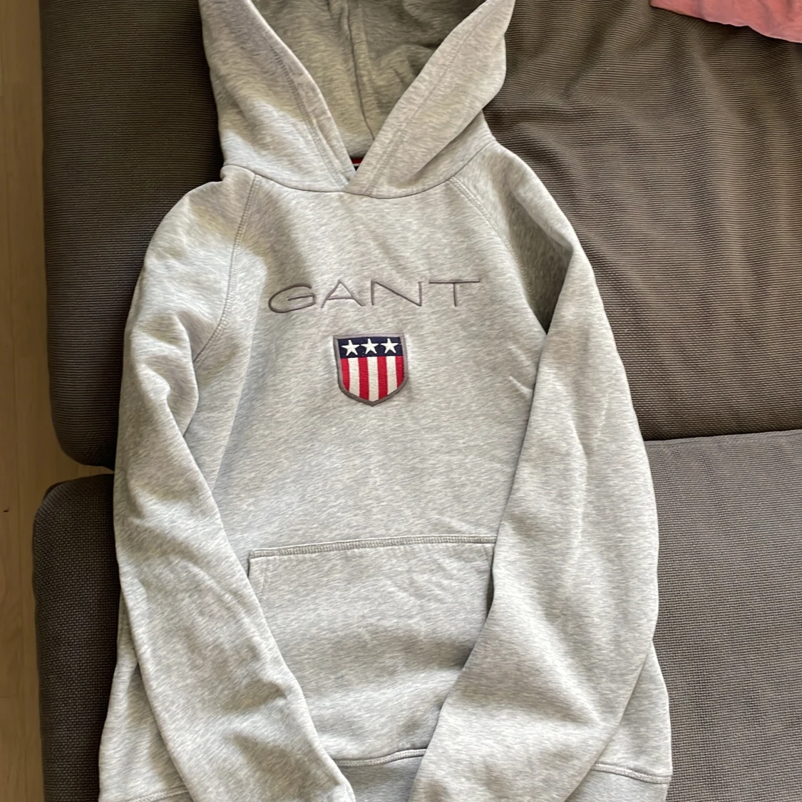 Grå hoodie från GANT med brodyr