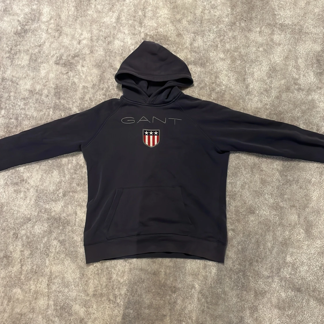 Säljer denna snygga Gant hoodie! Färg marinblå! Passar inte längre mig. Den har börjat tappa färg vid armbågen men inget som syns när man har på sig den! Storlek 170 Priset går att diskutera och om du har mer frågor är det bara att skriva!