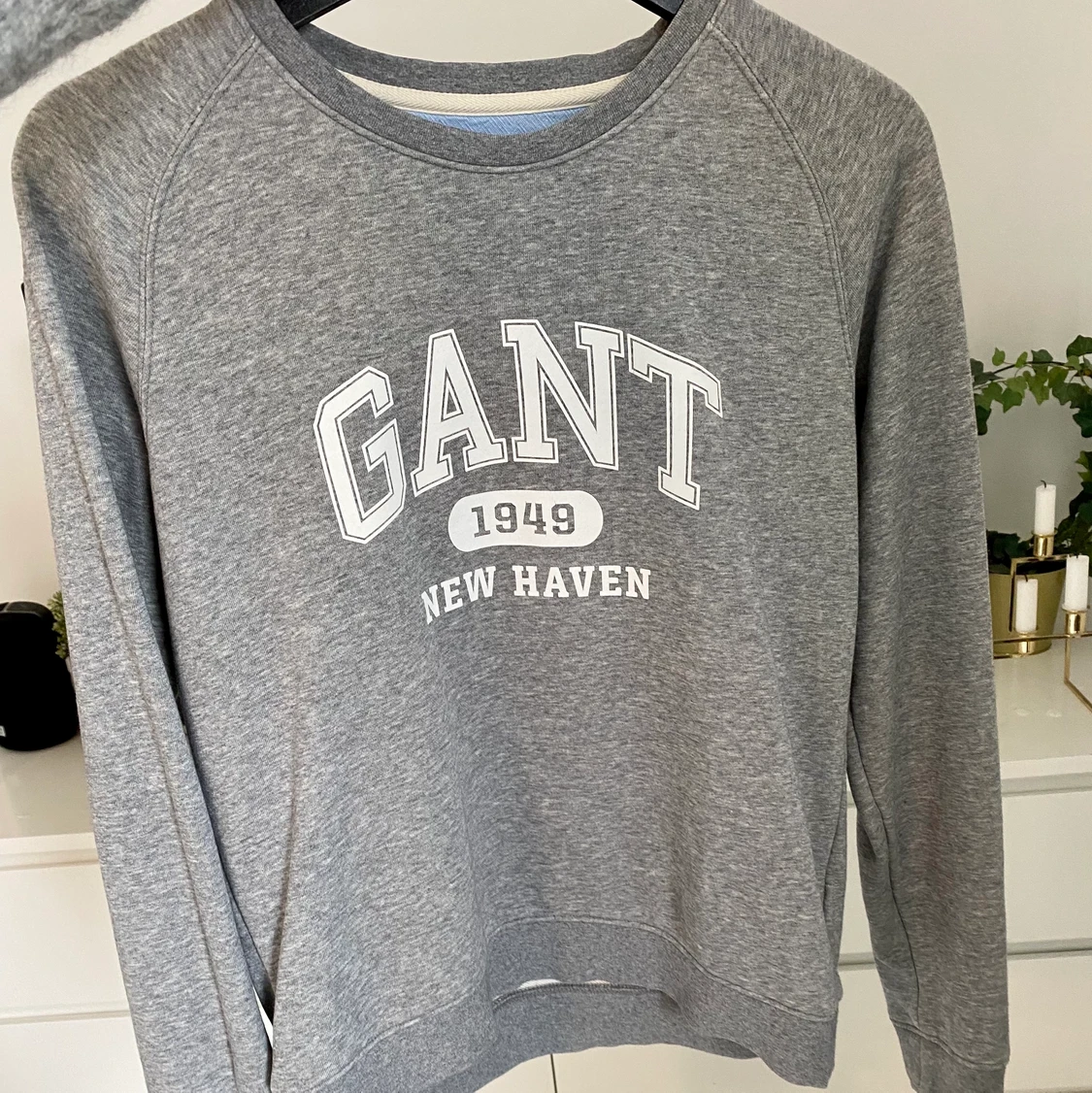 Grå GANT sweatshirt med vitt tryck på bröstet🤍 är storlek M men har passform som storlek S