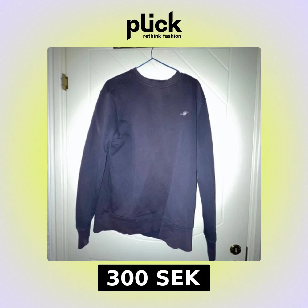 Säljer en stilren mörkblå sweatshirt från GANT med liten logga på bröstet. Tröjan har långa ärmar och rund halsringning, perfekt för en avslappnad look. Passar bra till både jeans och chinos.