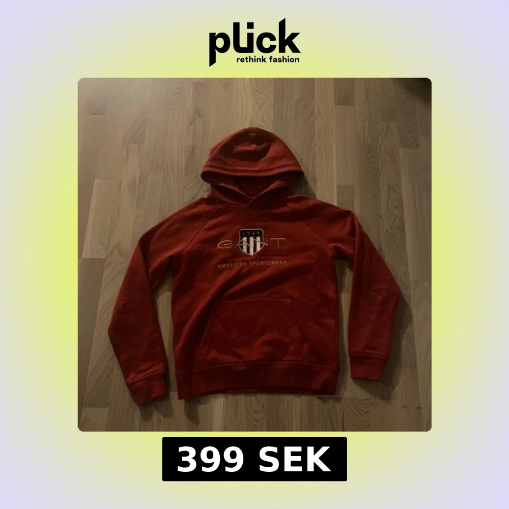 Säljer en snygg röd hoodie från GANT med tryck på framsidan. Perfekt för en avslappnad stil. Köpt för 1000 kr. Mitt pris 299. Kan gå med på byten.
